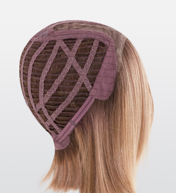 La estructura interior está diseñada con una base cosida a máquina en tiras de algodón fino, lo que garantiza ligereza, ajuste perfecto y ventilación óptima. Es una peluca muy cómoda de llevar incluso durante todo el día.